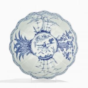Porcelaine émaillée bleu à décor rayonnant, bords chantournés, D...