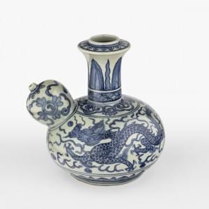 Porcelaine émaillée bleu blanc à décor d'un dragon et d'un phéni...