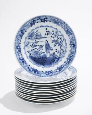746. Suite de 12 assiettes, Chine, Compagnie des Indes, XVIIIe s