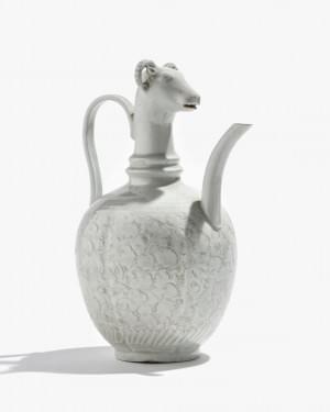 Porcelaine blanche à décor en léger relief d'un dragon et d'un p...
