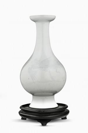 Porcelaine blanche à décor incisé d’un phénix, marque apocryphe...