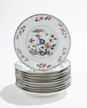 757. Suite de dix assiettes Imari, Chine, Compagnie des Indes, XVIIIe...