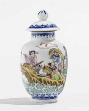 Porcelaine émaillée bleu blanc à décor des huit immortels et de...