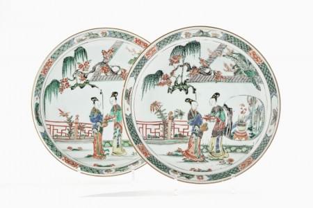 792. Paire de grands plats famille verte, Chine, dynastie Qing (1644-...