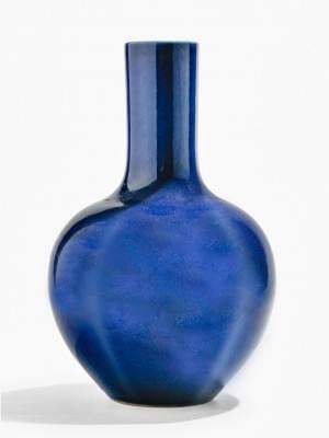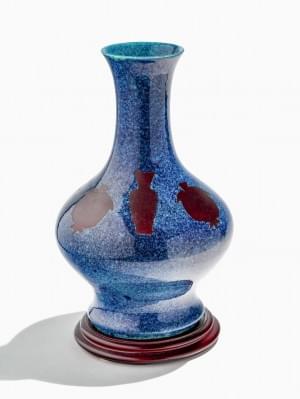 Porcelaine émaillée bleu flambé à décor de silhouettes de vases,...