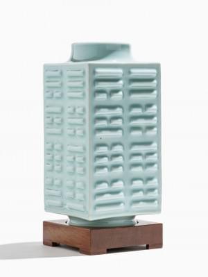 Porcelaine émaillée céladon à décor de trigrammes, H 29 cm