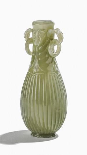 817. Petit vase à panse côtelée et anses anneaux, Chine, dynastie Qin...