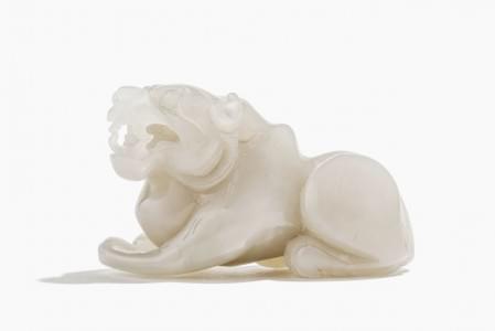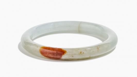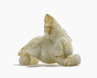 Jade blanc et veiné rouille sculpté, L 6,5 cm