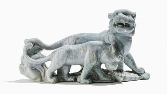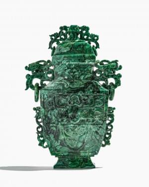 Jaspe vert à décor sculpté en bas-relief de tao-tié, Chine, XXe...