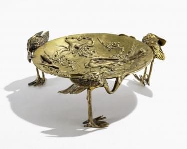 Bronze à patine médaille à décor de volatiles et échassiers form...