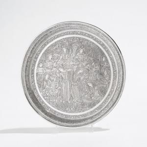 Argent, à décor gravé de musiciens et servantes, D 25 cm, 520g