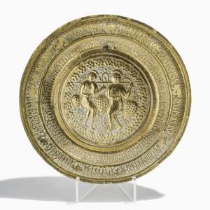 935. Bassin à décor repoussé de l'exploration de Canaan et calligraph...