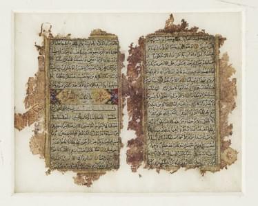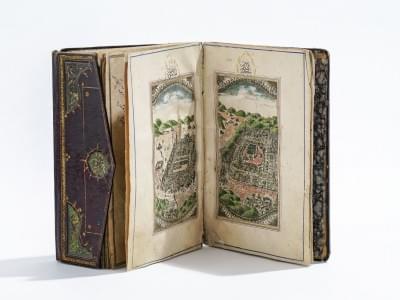 Encre et or sur papier, reliure à volet en cuir gaufré et doré a...