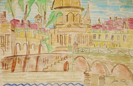 Paris-Le pont des Arts, huile sur carton, signée et datée 58, 33...