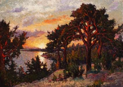 Les palmiers, huile sur panneau, signée et datée 28, 33x41 cm