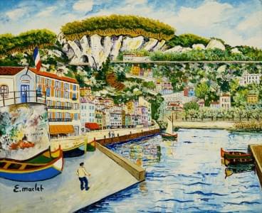 Club nautique de Cassis, huile sur toile, 50x61 cm