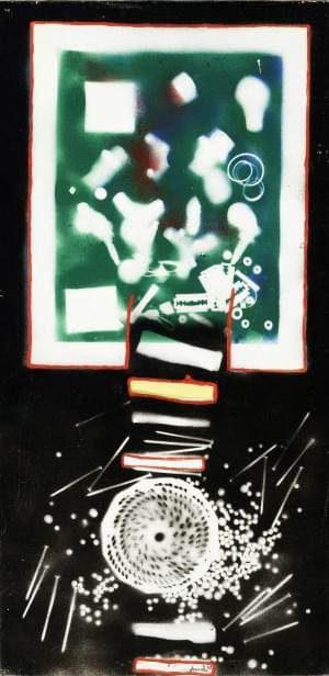 Les bombardements IV, huile sur toile, signée et datée au dos 19...