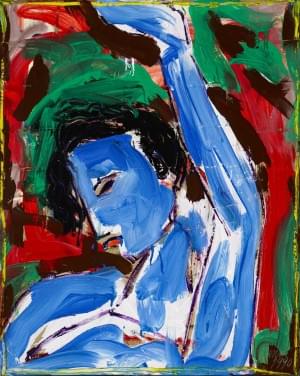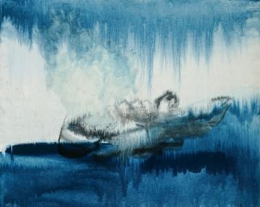 Le beau bleu, technique mixte sur toile, signée et datée 1990, 8...