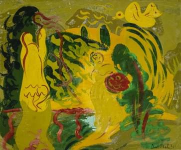 Prière à Priape, technique mixte sur toile, signée et datée 1983...