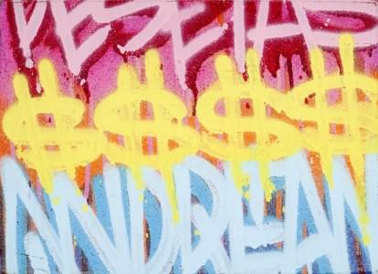 International Money n.5, aérosol sur toile, signée et datée Mars...