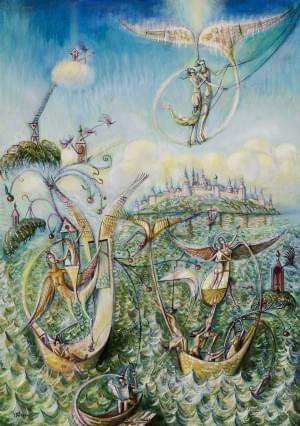 Rapture, huile sur toile, signée et titre, 50x70 cm
