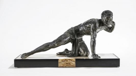 Jeune homme tendant l'oreille, régule et marbre, circa 1930, L 6...