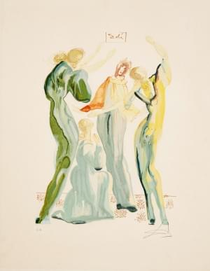 Scène mystique, lithographie en couleurs, signée, épreuve d'arti...