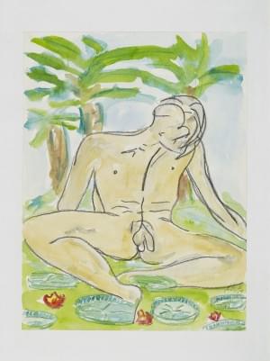Nu masculin de dos et nu masculin de face, paire d'aquarelles et...