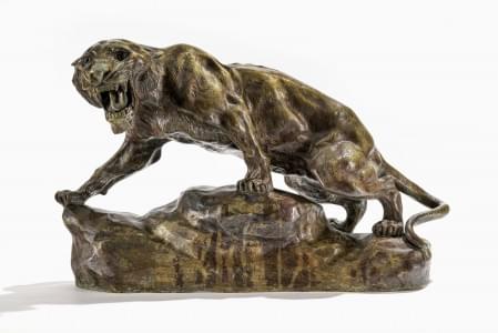 Tigre rugissant, bronze à patine médaille, 50x33 cm
