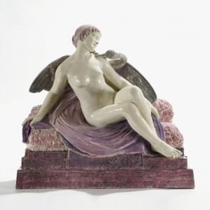 Leda et Le Cygne, céramique émaillée polychrome, signée, 48x51x1...