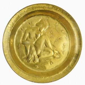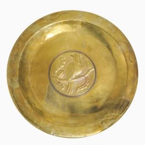 Plat à décor d'un perroquet dans un médaillon, laiton repoussé,...