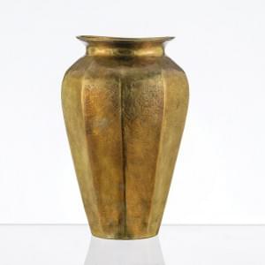 Grand vase facetté, laiton martelé, poinçonné, circa 1920, H 27...