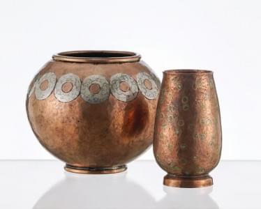 Vase Art Déco à décor de chevrons, cuivre, argent et étain, poin...
