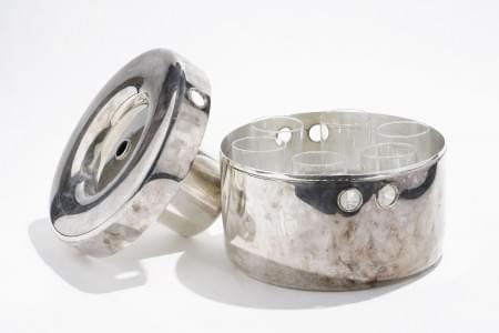 Rafraîchissoir à six verres, métal argenté, D 25 cm