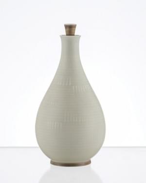 Vase piriforme à décor de fines lignes, porcelaine émaillée blan...