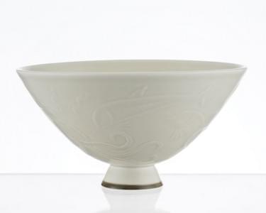 Coupe sur talon à décor de poulpes, porcelaine émaillée blanc, c...