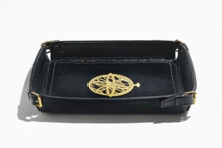 Cuir piqué sellier et doré au petit fer à décor d'une sphère arm...