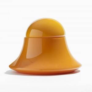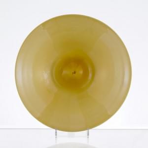 Verre blanc pailleté et jaune, probablement Venini, D 37 cm