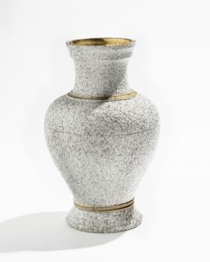 Vase balustre, céramique à engobe beige mouchetée et filets or,...