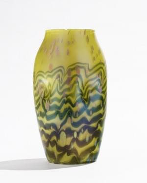 Verre opaque blanc et verre craquelé jaune, anses appliquées à d...