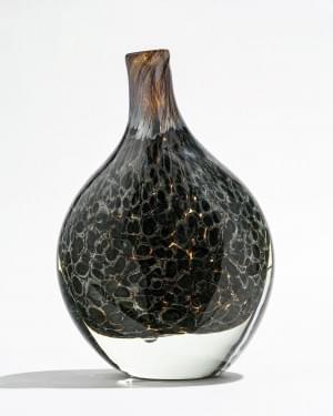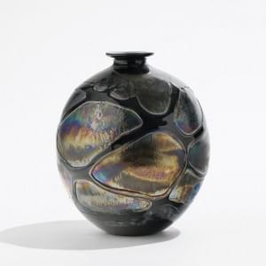 Vase boule, Murano, verre irisé à treillis noir, signé, daté 81,...