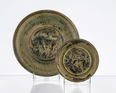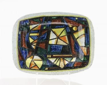 Céramique émaillée vert, jaune et gris, marque de la manufacture...