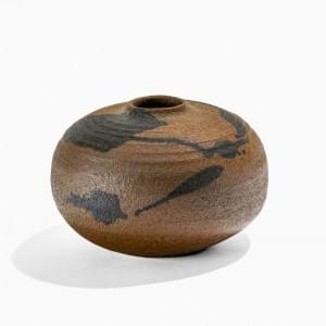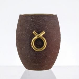Vase ovoïde à anses en anneaux, céramique émaillée brun mat et o...