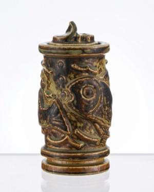 Vase couvert, grès émaillé et moucheté gris, daté 3.12.1918, cac...