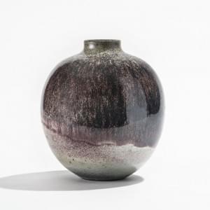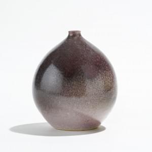 Vase boule à col étroit, céramique à glaçure aubergine, H 20 cm