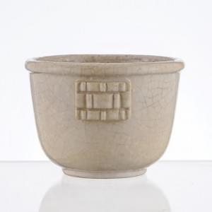 Cache-pot à décor de médaillons en relief, céramique émaillée iv...