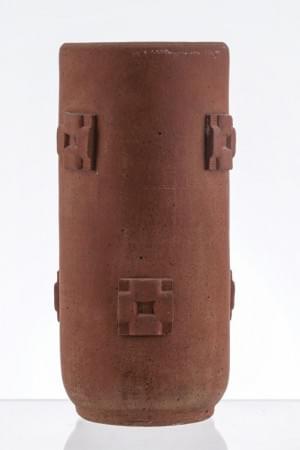 Grand vase cylindrique à décor de plaquettes cruciformes en reli...