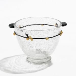 Verre bullé à décor appliqué d'une tige noire à baies miel, deux...