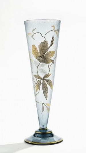 Verre travaillé à l'acide à décor de fleurs en or mat et brillan...