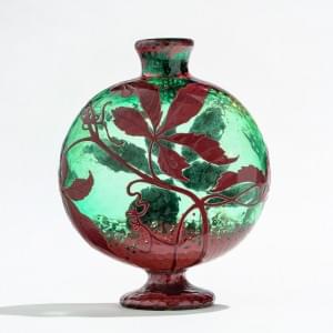 Verre multicouche dégagé à l'acide à décor de fleurs sur fond ro...